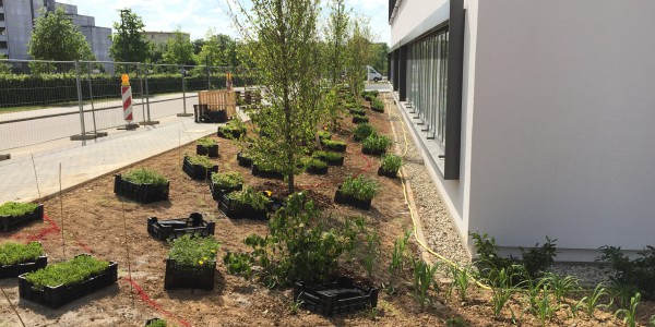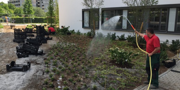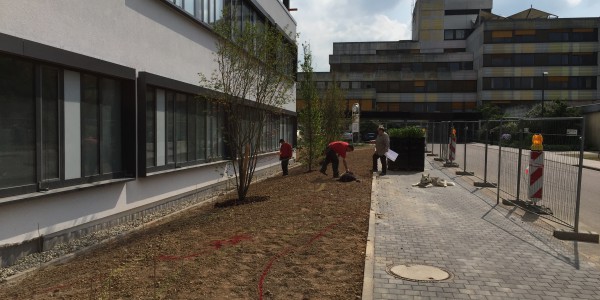Die Gestaltung der Außenanlage umfaßt ca. 5.000 m² und erfolgte u.a. mit folgenden Arbeiten :