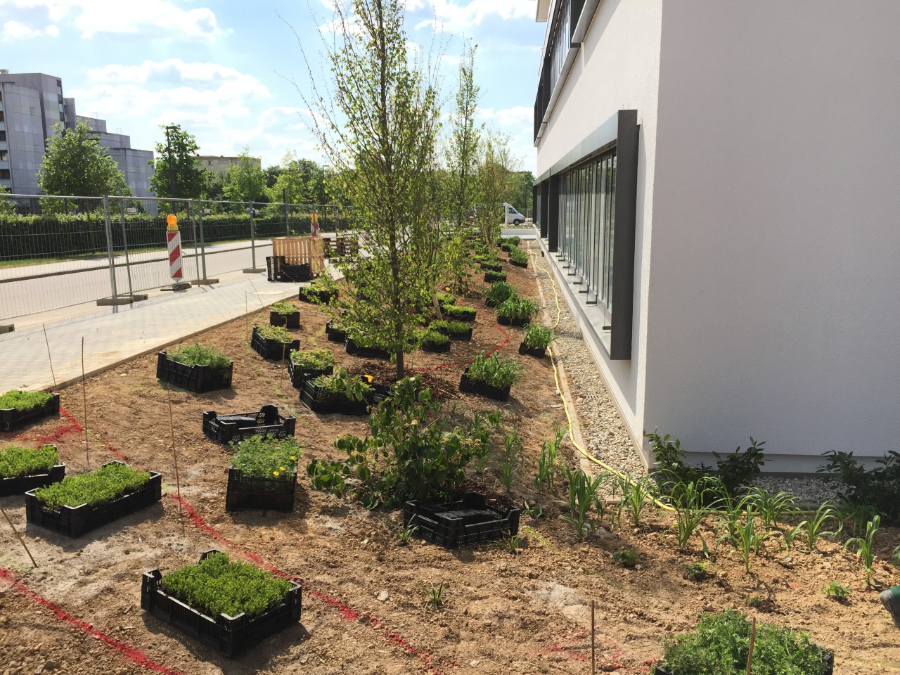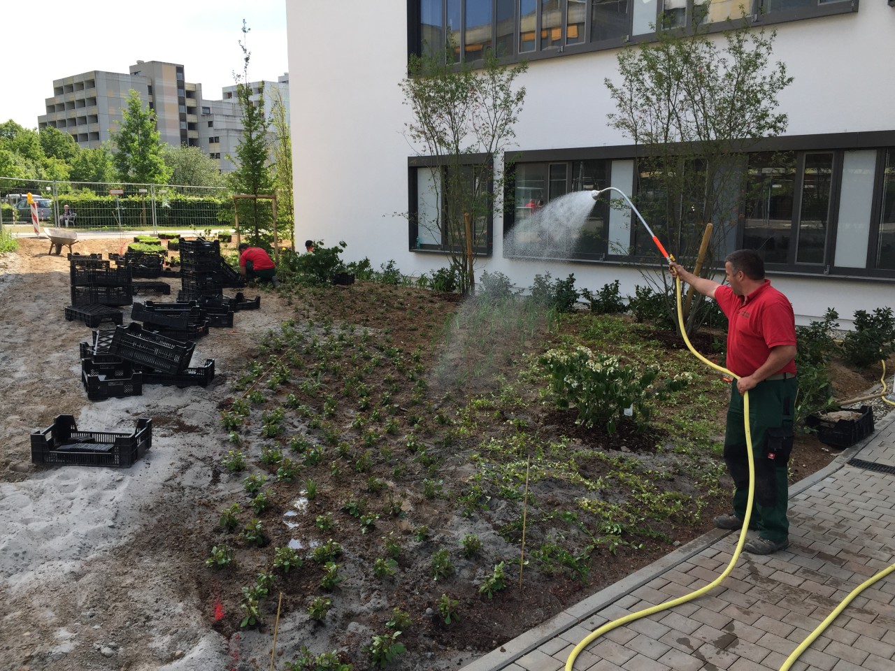 Die Gestaltung der Außenanlage umfaßt ca. 5.000 m² und erfolgte u.a. mit folgenden Arbeiten :